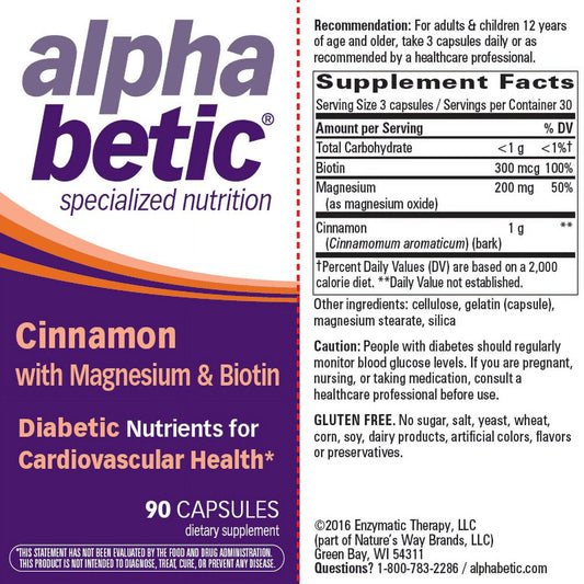 Alpha Betic Cinnamon plus Chromium & Biotin Diabetic Nutrient Capsules, 90 Ct