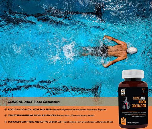 CLINICAL DAILY Blood Circulation Supplement. Herbal Varicose Vein Treatment, Spider Veins. High Blood Pressure, Cholesterol Support - Horse Chestnut Extract, L Arginine, Diosmin, Cayenne. 180 Capsules