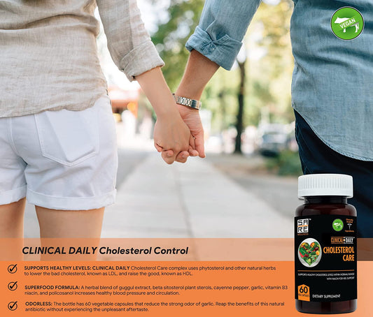 Cholesterol and Triglyceride Lowering Supplement for High Blood Pressure. Cayenne Pepper with Capsaicin, Garlic, Guggul, Vitamin B3, Niacin, Beta Sitosterol. 60 Capsules. Clinical Daily