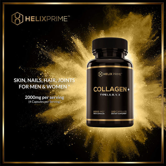 Collagen Peptides Capsules for Women or Men Anti Aging Beauty Skin Nails Hair Joints Protein Multi Collagen Type I II III V X Marine Bovine Hydrolyzed Collagen Peptides 120 Capsules Made in USA