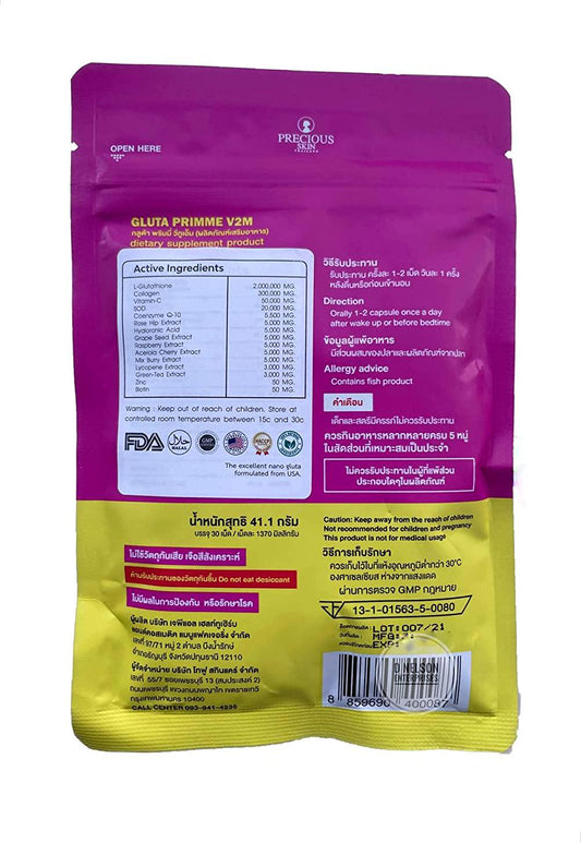 Gluta Prime Plus SOD 2000000mg Whitening Anti Aging 30 Softgels