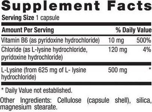 Country Life L-Lysine 500mg with B-6, Supports Immune Health, Promotes Collagen Renewal in Lips and Mouth, 100 Vegan Capsules, Certified Gluten Free, Certified Vegan