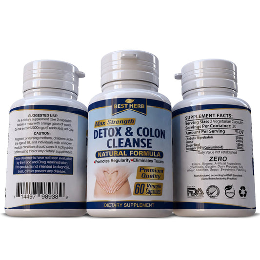 Colon Detox plus Cleanse MAX Strength - Helps Digestive Health Weight Loss - 60 Pills