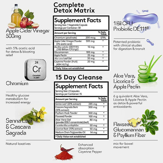 CandEase Matrix Pills and Colon Cleanser and Complete Detox Matrix Fast Kit Bundle 3pk | Caprylic Acid Oregano Protease and Cellulase Enzymes Laxatives ACV Chromium and 100 Bil CFU/g Digestive probiotics
