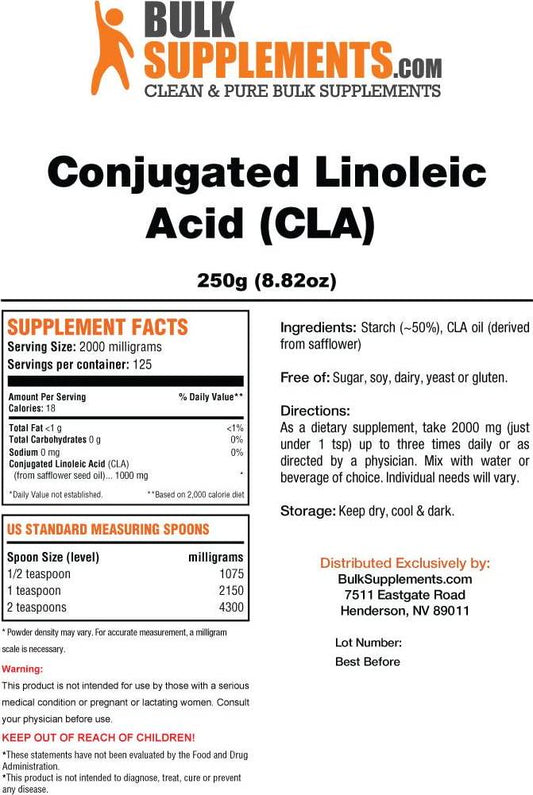 BulkSupplements.com Conjugated Linoleic Acid (CLA) Powder - CLA Supplements - Fat Loss Supplements - Stomach Fat Burner - Weight Loss Supplement (250 Grams - 8.8 oz)