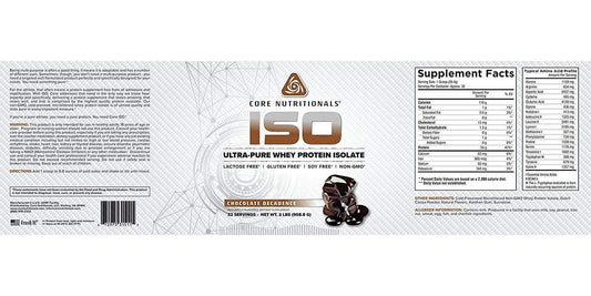 Core Nutritionals ISO, 100% Micro Filtered, Zero Artificial Fillers, 25g Whey Protein Isolate, 32 servings (Chocolate Decadence)