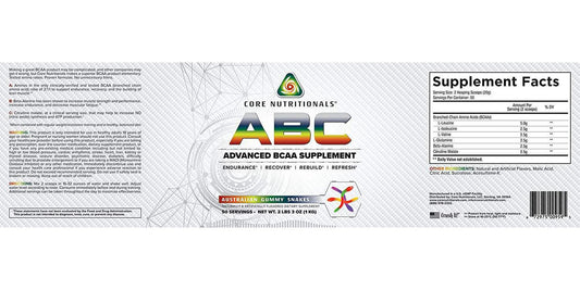 Core Nutritionals ABC Advanced BCAA Supplement 50 Servings (Australian Raspberry Chews)