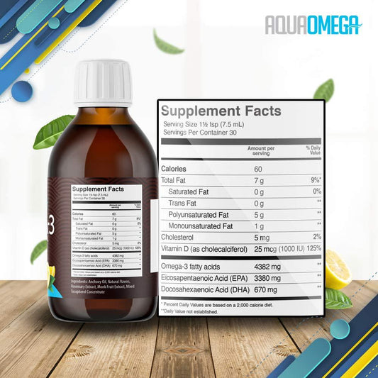 AquaOmega High EPA Omega-3 Daily Supplement, Lemon Flavor – 4,380 mg of Omega-3’s per Serving