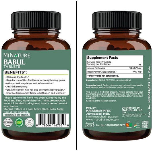Babul Tablets- 90 Tablets, 1000 mg by mi nature | 45 Days Supply | 100% Natural Babul Tablets | Vegan | Herbal supplements | Strong teeth | Dental Care | Anti-inflammatory | Oral hygiene | From India