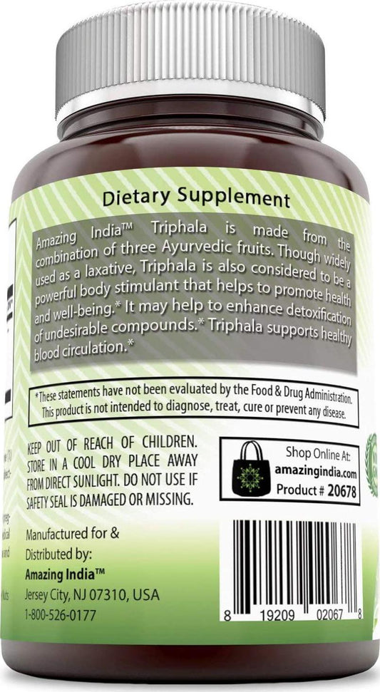 Amazing India Organic Triphala (3 Fruits) 750 mg 120 Veggie Capsules (Non-GMO) - Raw, Vegan- Gluten-Free, Plant-Based Nutrition - Supports Cell Regeneration, Detoxification and Overall Health*
