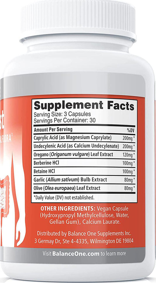 CandAssist by Balance ONE - Natural Cleanse and Detox Support - Caprylic Acid, Oregano, Berberine - for Women and Men - Delayed Release Capsules - Vegan, Non-GMO - 30 Day Supply