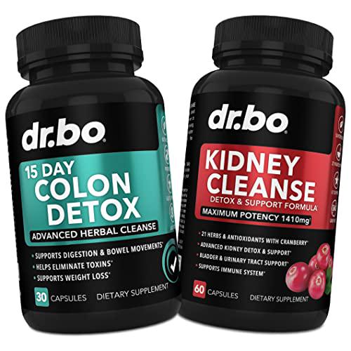 Colon Cleanse and Kidney Cleanse Detox Support Supplement - Natural Bowel Cleanser Pills for Intestinal Bloating and Daily Constipation Relief - Help Repair Kidneys, Bladder Control and Urinary Tract Health
