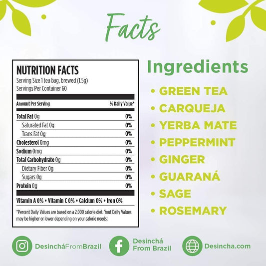 Desincha - Night Time Tea I Caffeine Free 60 Count and Debloatea I Ginger and Peppermint 60 Count