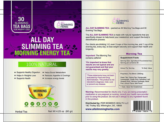 ALL SLIMMING HERBS All Day Slimming Tea For Weight Loss - All Natural 30 Days Detox Tea That Flattens Tummy - Daytime Energy Boost Tea 30 Bag+ Evening Detox Tea 30 Bag