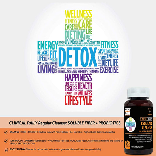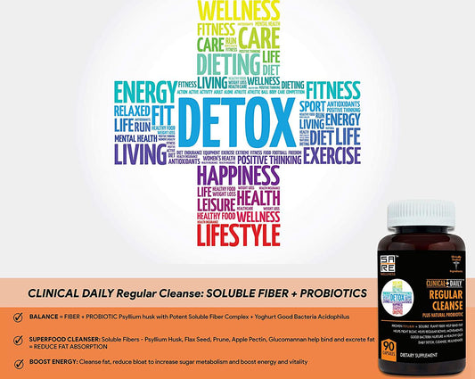 CLINICAL DAILY Regular Cleanse. Natural Colon Cleanser and Detox for Weight Loss and Constipation Relief. 90 Herbal Dietary Fiber Pills - Psyllium Husk Powder Capsules with Glucomannan, Aloe, PROBIOTICS