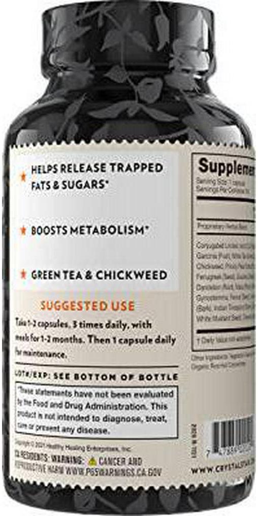 Crystal Star Fat and Sugar Detox (60 Capsules) Herbal Diet Cleanse and Metabolism Boost Supplement to Help Release Fat and Curb Appetite - Green Tea Extract, CLA, Dandelion and Chickweed - Non-GMO