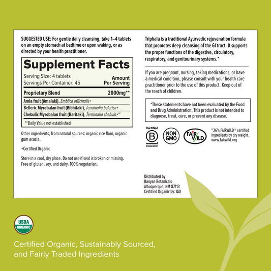 Banyan Botanicals Triphala Tablets - Organic Triphala Supplement with Amla, Haritaki & Bibhitaki – for Daily Detoxifying, Cleansing, & Rejuvenating* – 180 Tablets – Non-Gmo Sustainably Sourced Vegan