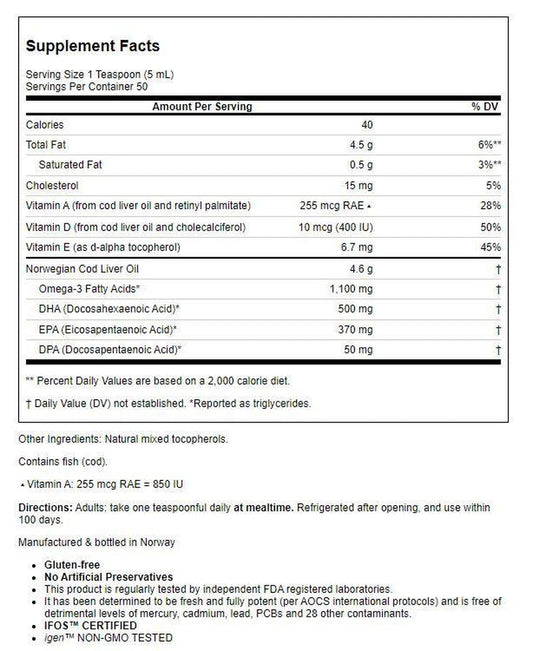 California Gold Nutrition Norwegian Cod Liver Oil Liquid, Natural Lemon Flavor, 6.7 Fl Oz (200 Ml)