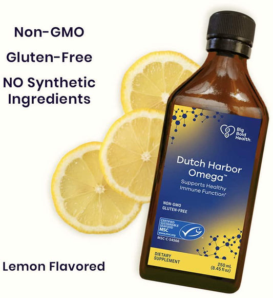 Big Bold Health Dutch Harbor Omega | Omega 3 Liquid Fish Oil Supplement | 250mL, 48 Servings, Natural Lemon Flavor |Wild Alaskan Cod Liver Fish Oil | Includes Omega-3 Fatty Acids with DPA, DHA, and EPA
