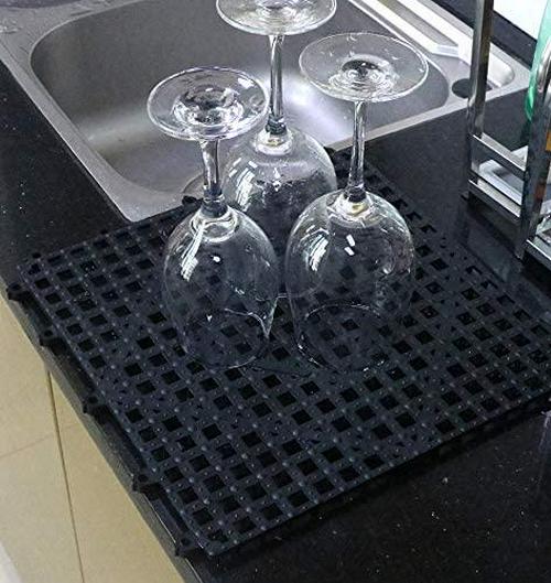 Bar Lux 12 x 12 Inch Bar Spill Mat, 10 Interlocking Bar Service Mat - Diamond Cutouts, Washable, Black Rubber Bartender Mat, Flexible, For Glassware - Restaurantware