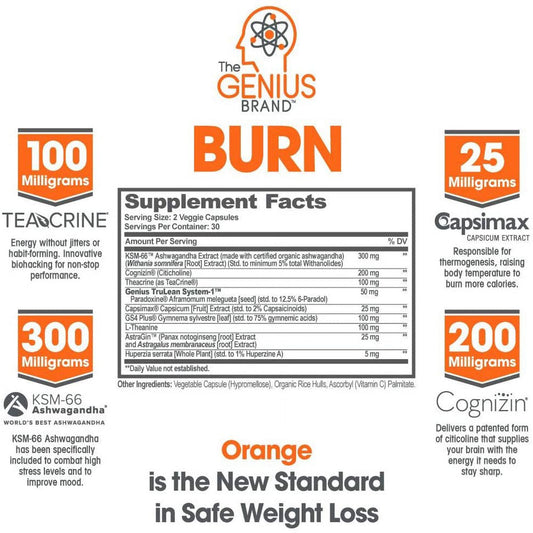 Fat Burner Supplement with Ashwagandha & Teacrine Appetite Suppressant Thermogenic for Weight Loss & Energy Support, Genius Burner by the Genius Brand