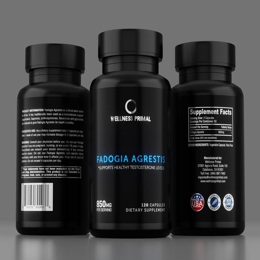 Fadogia Agrestis 850Mg per Serving (120 Capsules) Maximum Strength Extract Supports Healthy Testosterone Levels and Athletic Performance Made in the USA by Wellness Primal (3 Bottle)
