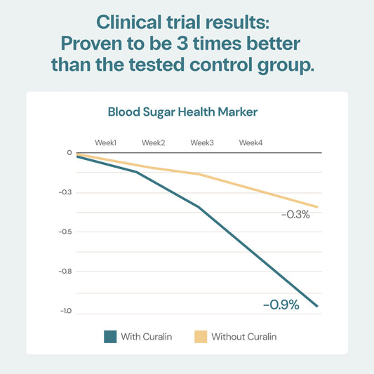 Curalin Blood Sugar Support Supplement - Promotes Healthy Glucose Levels Already in the Normal Range - Clinically Tested, Effective, and 100% Natural - 180 Capsules - 30 Day Supply