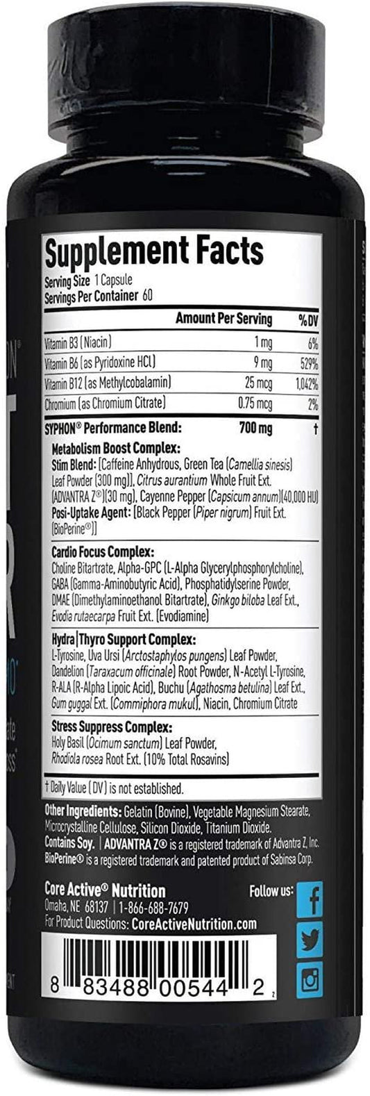 Core Active Syphon Thermogenic Fat Burner - Keto Friendly Weight Loss Supplement Pills - Advantra Z for Energy, Focus, Appetite Control Increase Metabolism Muscle Toning - 60 Capsules - 60 Day Supply