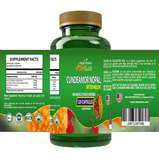 CUNDEAMOR NOPAL Bitter Melon Blood Sugar Natural Balance Dietary Supplement - 120 Capsules