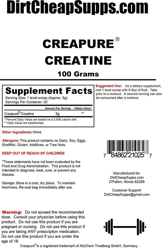 DirtCheapSupps Creapure Creatine Powder 100g (20 Servings) | Pure German Creatine Monohydrate from Creapure | Safest and Purest Creatine