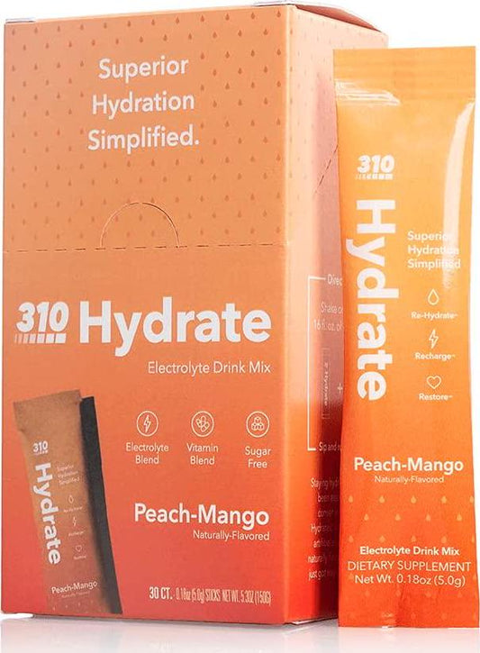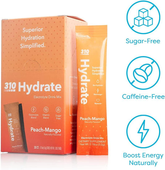 310 Nutrition Hydration Electrolyte - Hydration Minerals and Electrolytes Powder Packets | Electrolyte Supplement Drink Mix | Sugar Free | Includes 30 Individual Servings (Peach Mango)