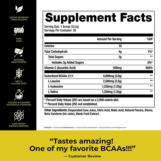 BCAA Natural-Non-GMO-Plant-Sourced Amino Acid Drink- Improve Performance -Enhance Recovery-Boost Immune Health-BCAA Drink Mix -Lemonade Flavor- 30 Serve