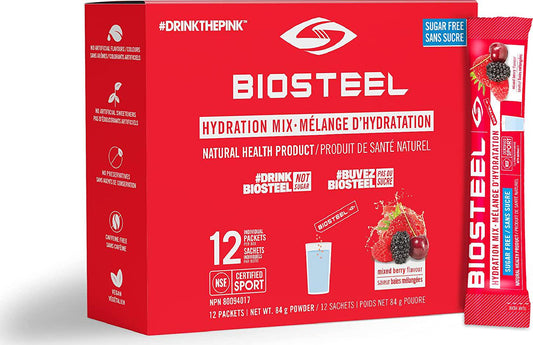 BioSteel Hydration Mix, Sugar-Free with Essential Electrolytes, Mixed Berry, 12 Single Serving Packets