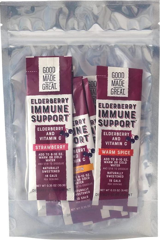 Elderberry Immune Support Drink Mix Variety Pack - Lemon, Strawberry and Warm Spice - with Vitamin C- No Added Sugar