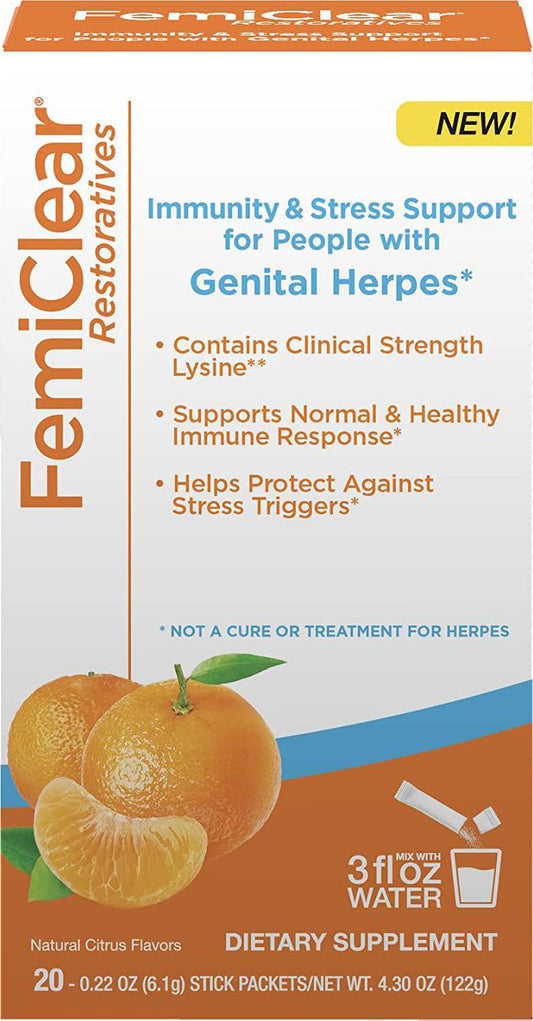 FemiClear Restoratives | Immunity and Stress Support with L-Lysine | Dietary Supplement Drink Mix | 20 Count