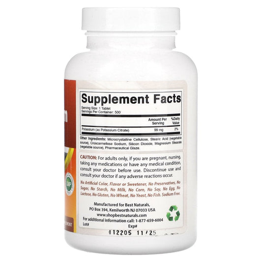 Best Naturals Potassium Citrate 99Mg 500 Tablets - 3Rd Party Lab Tested