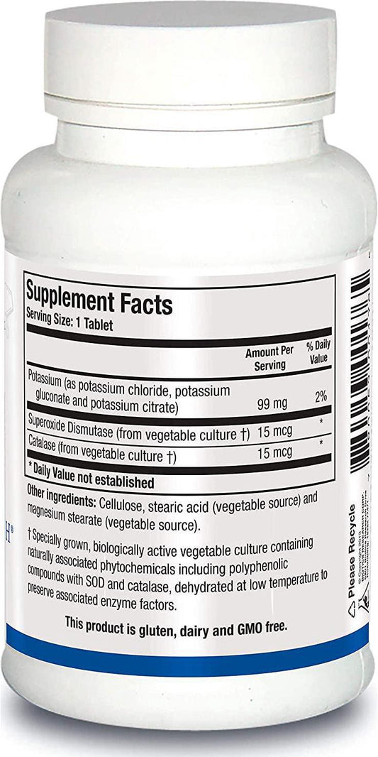 Biotics Research K-ZymeTM Potassium, 99 mg, Supports Cardiovascular Function, Electrolyte Balance, Nerve Transmission, Muscle Activity, Superoxide Dismutase, Catalase. 100 Tablets