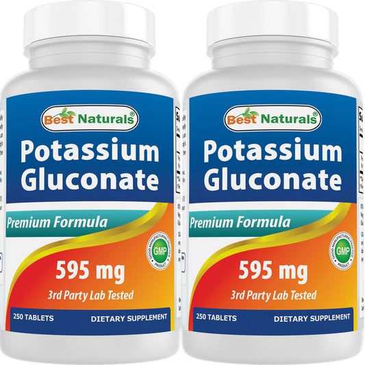 2 Pack Best Naturals Potassium Gluconate Supplement 595 Mg 250 Tablets