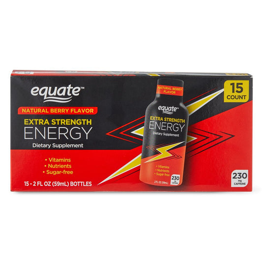 Equate Extra Strength Energy Dietary Supplement, Caffeine 230Mg, Berry Flavor, 15 Pack