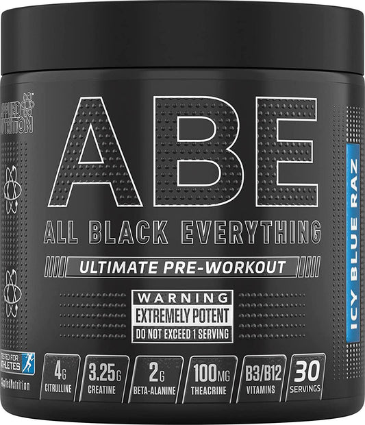 ABE All Black Everything Pre Workout Energy, Increase Physical Performance with Citrulline, Creatine, Beta Alanine, Caffeine Vitamin B Complex (ICY Blue Raz, 315g)