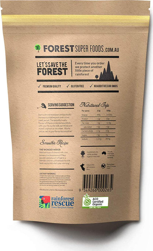 Forest Super Foods Certified Organic Raw Yellow Maca Powder 500g (60 day supply) Direct From Peru. No fillers.