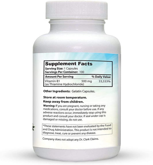 Dr. Clark Vitamin B1 Supplement, 500mg, 100 Capsules