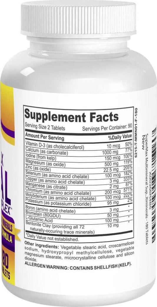 3-Month Multimineral Supplement (Iron Free) with 72 Trace Minerals / Natural Multiminerals / High Potency Multi Mineral Supplements All-in-1 Formula - 180 Tablets