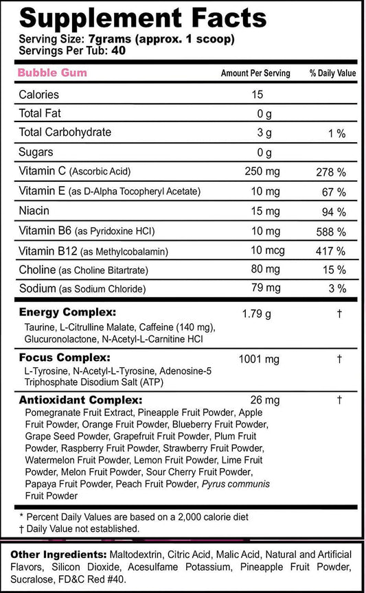 G Fuel Bubble Gum Flavor (40 Servings) Elite Energy and Endurance Powder 9.8 oz.