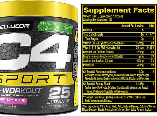 C4 Sport Pre Workout Powder Straberry Lemonade - Naturally Sweetened + Sugar Free Preworkout Energy Supplement for Men and Women - 135mg Caffeine + Creatine - 25 Servings