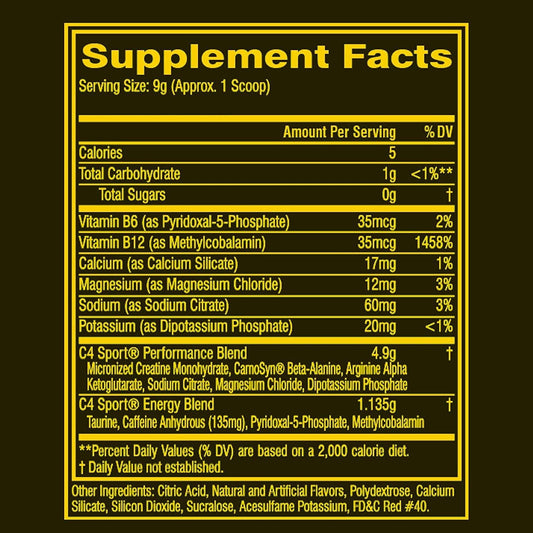 C4 Sport Pre Workout Powder Fruit Punch | NSF Certified for Sport + Sugar Free Pre-workout Energy Supplement for Men and Women | 135mg Caffeine + Creatine monohydrate | 30 Servings