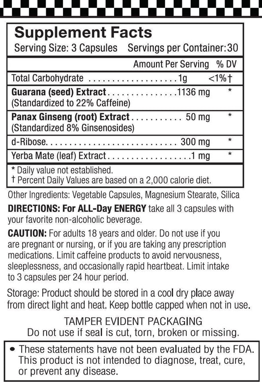 Darrell Waltrip's Boogity Booster All-Day Energy Capsules-Natural Energy Supplement with Guarana Extract, Ginseng, D-Ribose, and Yerba Mate-Natural Energy Without The Jitters-30 Day Supply-90 Count