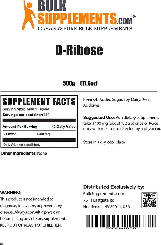 BulkSupplements.com D-Ribose Powder - Energy Supplements - Electrolyte Powder - Ribose Supplement - ATP Supplements - Energy Powder - D Ribose Powder (500 Grams - 1.1 lbs)