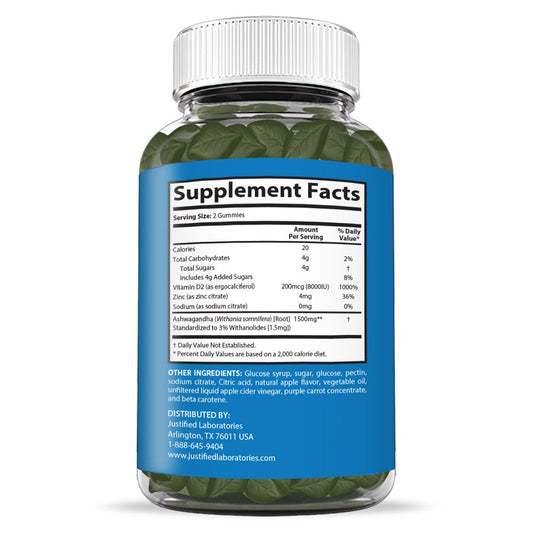 (3 Pack) Justified Laboratories Ashwagandha Gummies 1500MG Energy 180 Gummys