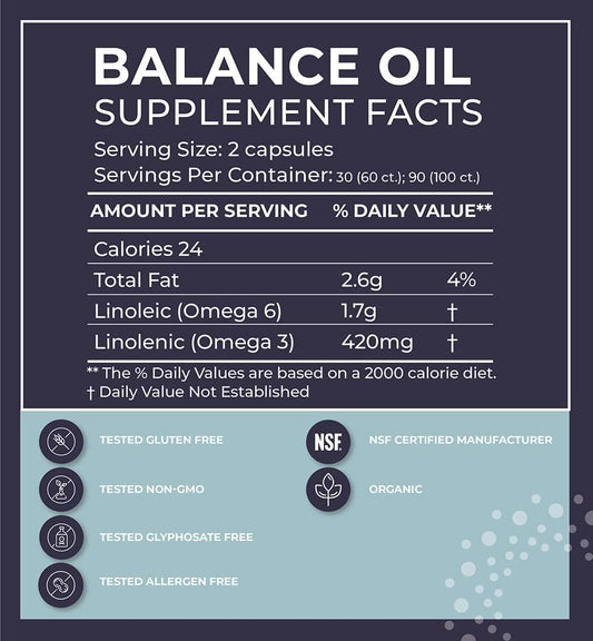 BodyBio Balance Oil | Essential Fatty Acids Omega 3 and 6 | Cold Pressed | Organic Safflower and Flax Seed Oil Blend for Brain and Mood Support and Cellular Health | 60 Softgels